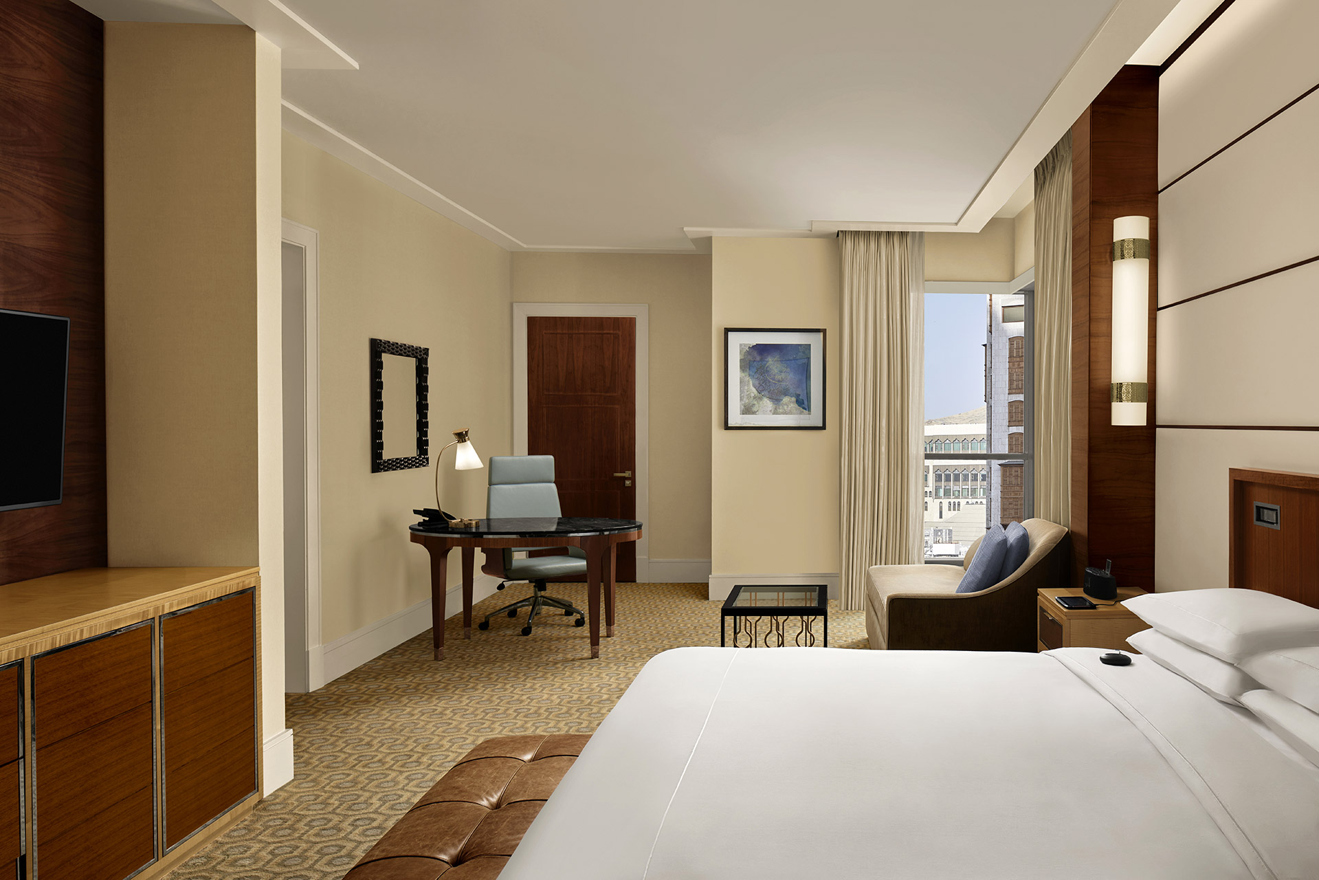 Conrad Makkah'ın mimarisi, misafirlerine ibadetlerinin hemen ardından sığınabilecekleri sakin, lüks ve konforlu bir vaha sunmak üzerine kurulu. 15 yıllık tecrübemle, benim odak noktam; abartılı bir lüksü göstermek değil, Kâbe'ye bakan bir odadaki o "dinginliği", o "huzurlu anı" ve o "manevi doyumu" yansıtan kareler yakalamaktı. Işık, burada sadece aydınlatma değil, "huzurun" kendisiydi. Fotoğraflarda, odaya dolan manevi atmosferin "hissini" vermeye odaklandım.