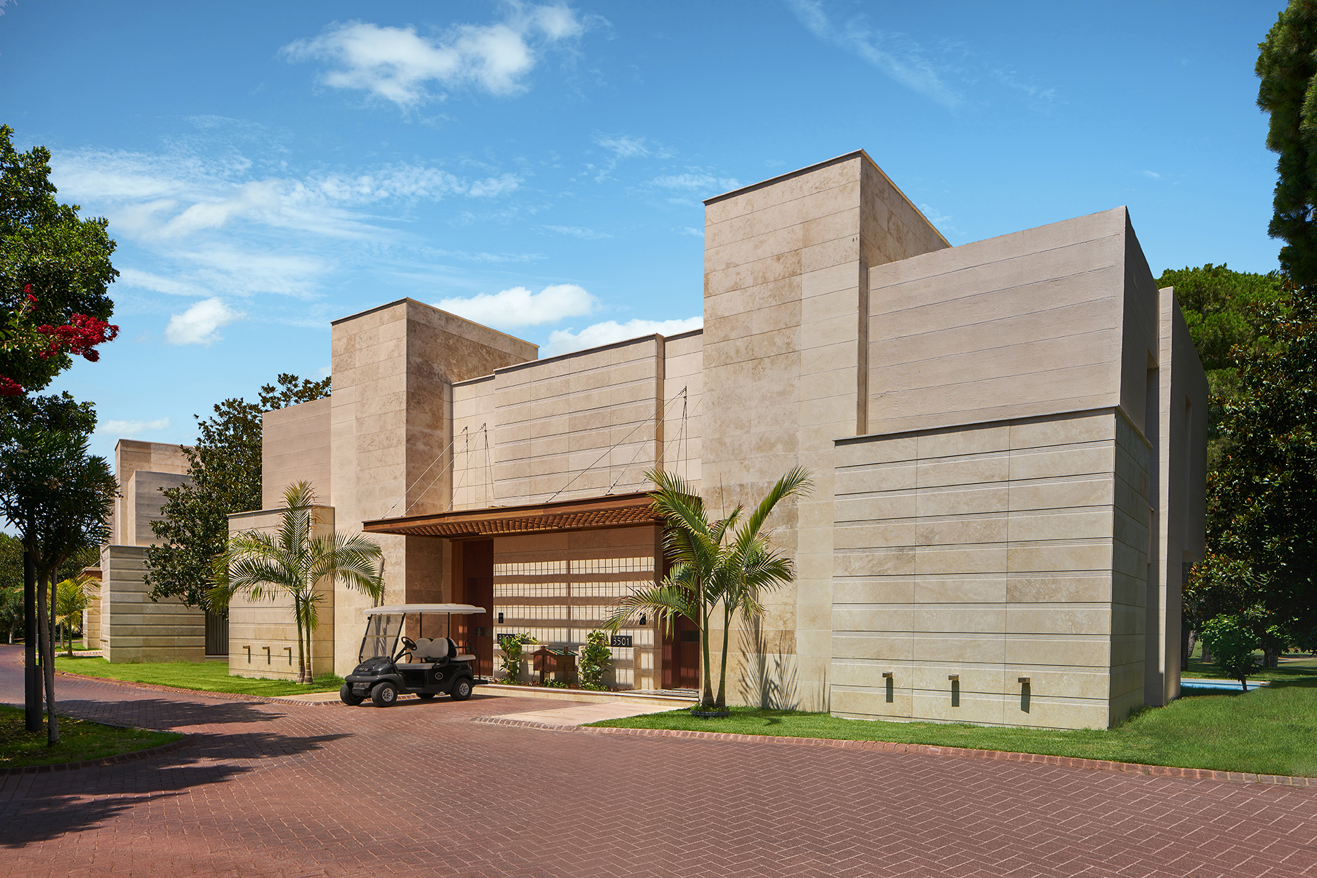 Gloria Serenity'nin mimarisi, doğayla bir diyalog halinde. Çam ağaçlarının arasında gizlenen villalar, modern mimarinin doğaya "hükmetmek" yerine ona nasıl "eşlik ettiğini" gösteriyor.